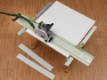 Za pomocą prowadnicy równoległej FS-PA można łatwo i niezwykle precyzyjnie ciąć równe listwy o szerokości do 650 mm podczas docinania płyt. W tym celu ograniczniki montowane są na szynie prowadzącej, a wymagany wymiar ustawiany jest za pomocą zderzaków przesuwnych.
