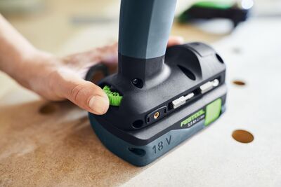 - Optymalne oświetlenie obszaru roboczego przez dodatkowe lampy LED (w połączeniu z akumulatorem Bluetooth® i z możliwością sterowania przez aplikację Festool Work)