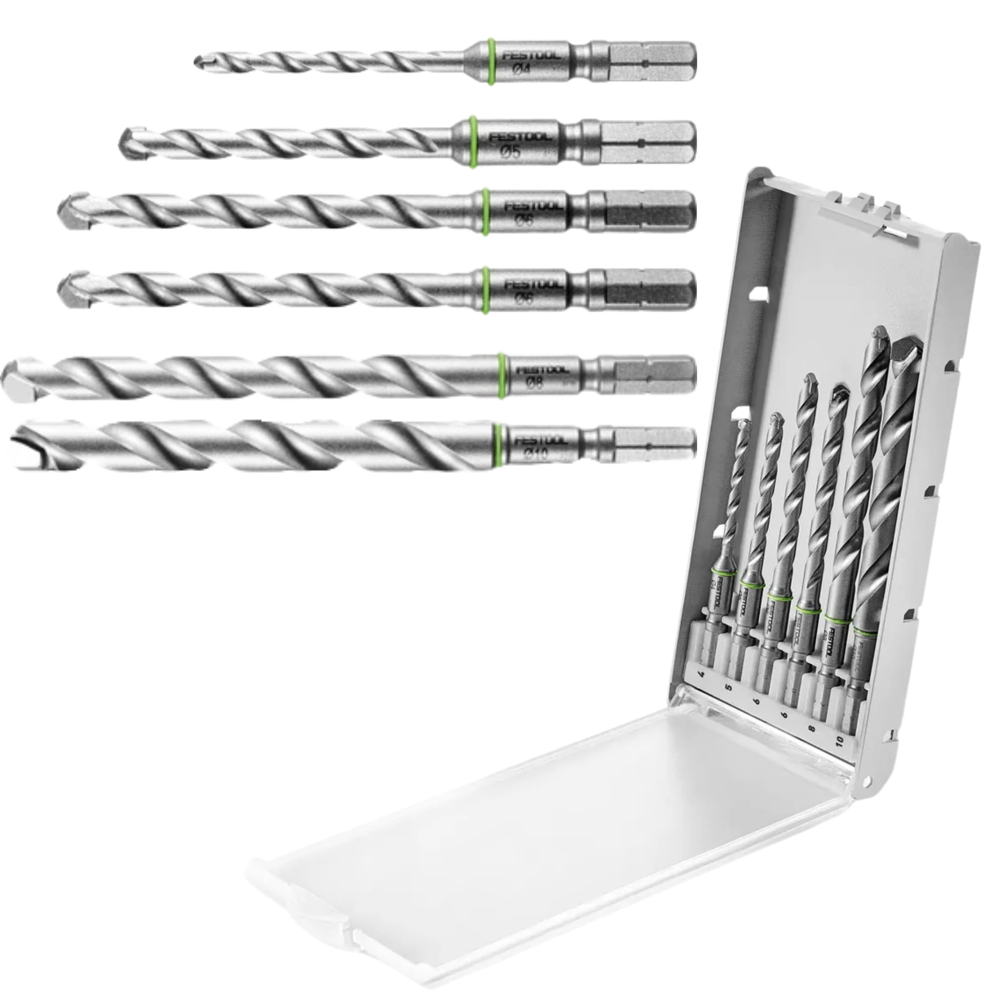 FESTOOL Kaseta z wiertłami BKS SYS3 D3-10 CE/W, 3-10 mm, 6 sztuk wiertła do drewna, klejonki, MDF i szkła akrylowego 577396