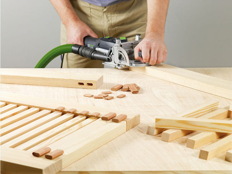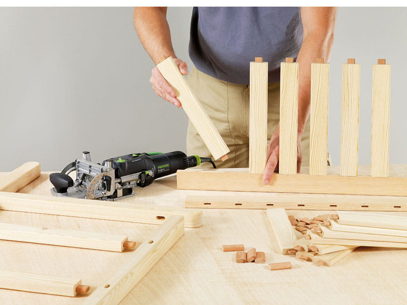 Frezarka do połączeń DOMINO DF 500 Q-Set łączy precyzję kołka okrągłego z elastycznością zastosowania łącznika płaskiego. System składa się z frezarki DF 500, łączników DOMINO o różnych wielkościach oraz wszechstronnego osprzętu dla specjalnych zastosowań. Rezultat: niezwykle stabilne, niewidoczne połączenia. Poza tym DOMINO może jeszcze dużo więcej: połączenia stelaży, ram, szuflad.