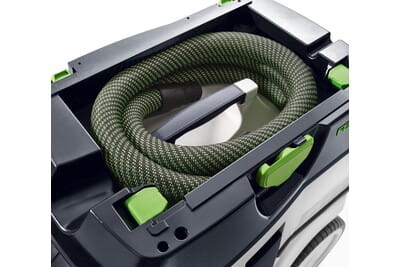 CLEANTEC CTL 36 EI AC wyróżnia się na tle poprzedniego modelu większą efektywnością systemu oczyszczania filtra głównego AUTOCLEAN. Zapewnia to niezmiennie wysoką moc ssania, dłuższe okresy pracy i dłuższą żywotność filtra przy niższych nakładach na konserwację. Obsługa dotykowa umożliwia intuicyjne sterowanie odkurzaczem. Z zainstalowanym na stałe złączem Bluetooth® do automatycznego uruchamiania odkurzacza za pomocą akumulatorowego narzędzia Festool lub opcjonalnego modułu zdalnej obsługi. Odkurzacz jest również połączony z aplikacją Festool, która umożliwia np. ustawienie interwałów czyszczenia. Gładki, antystatyczny wąż ssący można wygodnie przechowywać w zintegrowanym schowku na wąż.