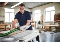 Przedłużona jednostka prowadząca umożliwia precyzyjne i łatwe przycinanie dużych materiałów płytowych. Odpowiednia przykładnica kątowa zapewnia precyzyjne cięcia pod kątem prostym oraz ułatwia łatwe i precyzyjne ustawianie dowolnych kątów. Do pilarki stolikowej Festool TKS 80