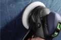 Pneumatyczna szlifierka mimośrodowa LEX 3 150/5 dzięki suwowi 5 mm pneumatyczna zapewnia wyniki najwyższej jakości, na przykład podczas szlifowania zgrubnego i pośredniego płaskich powierzchni i zaokrągleń oraz masy szpachlowej w trakcie 4-etapowego procesu.