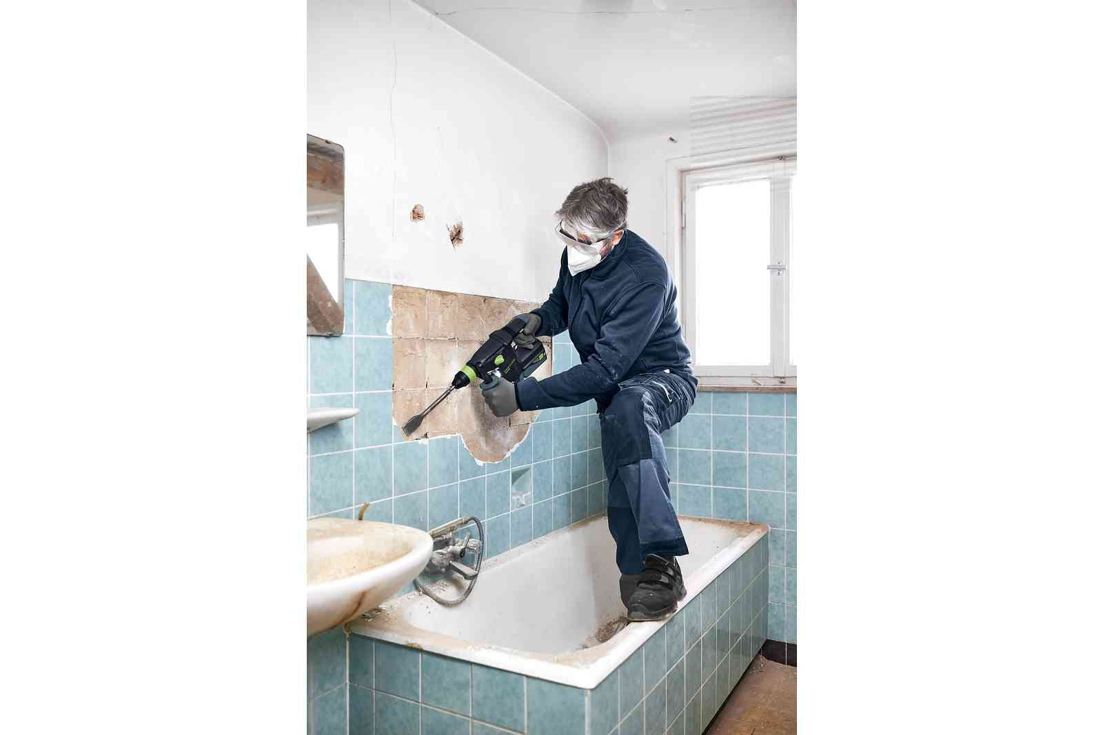 - Nadaje się również do lekkich prac z użyciem dłuta, jak np. skuwanie tynku, masy szpachlowej lub płytek; Wykonywanie mniejszych otworów i szczelin w piaskowcu i murze