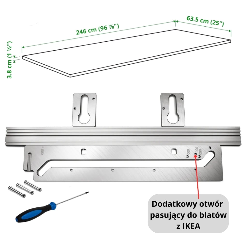 FESTOOL Szablon do łączenia blatów APS 900/3 Nowszy model z dodatkowym otworem pasującym do blatów IKEA nr 578727