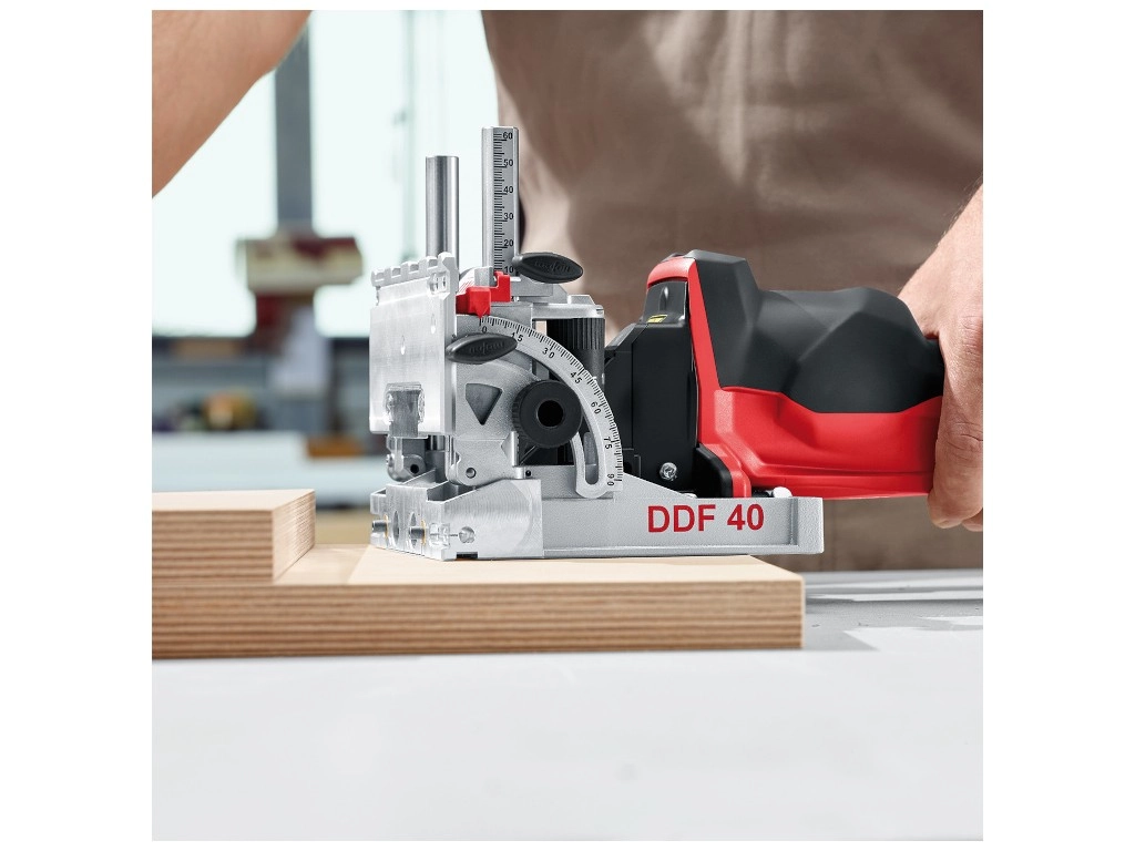 Nowa kołkarka DDF 40 wprowadza większą łatwość i wydajność w zakresie dokładnego wiercenia otworów pod kołki. Jej znakami rozpoznawczymi są szeroki zakres zastosowań, nowy ergonomiczny kształt ułatwiający obsługę oraz absolutnie równe, stabilne połączenia.
