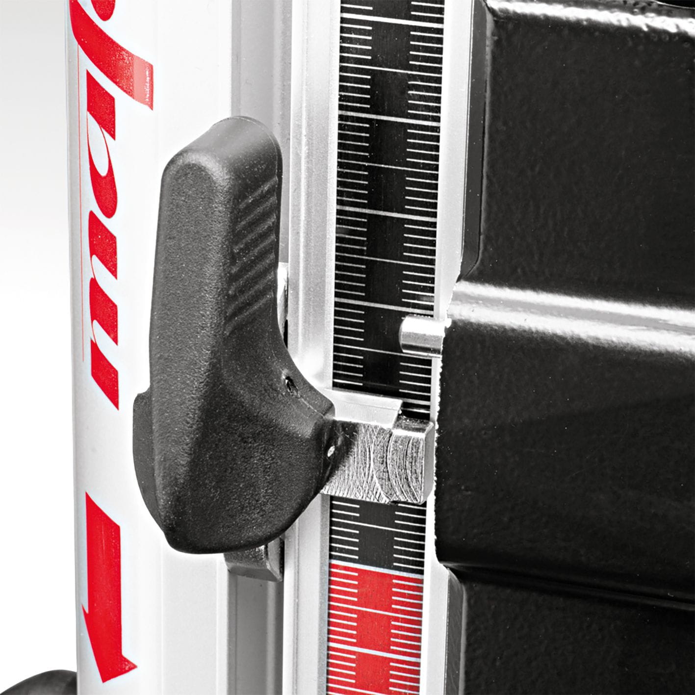 - Precyzyjne rozwiązanie: Ogranicznik równoległy można zamontować na wszystkich czterech bokach płyty podstawowej. Odległość od krawędzi można ustawić za pomocą skali.