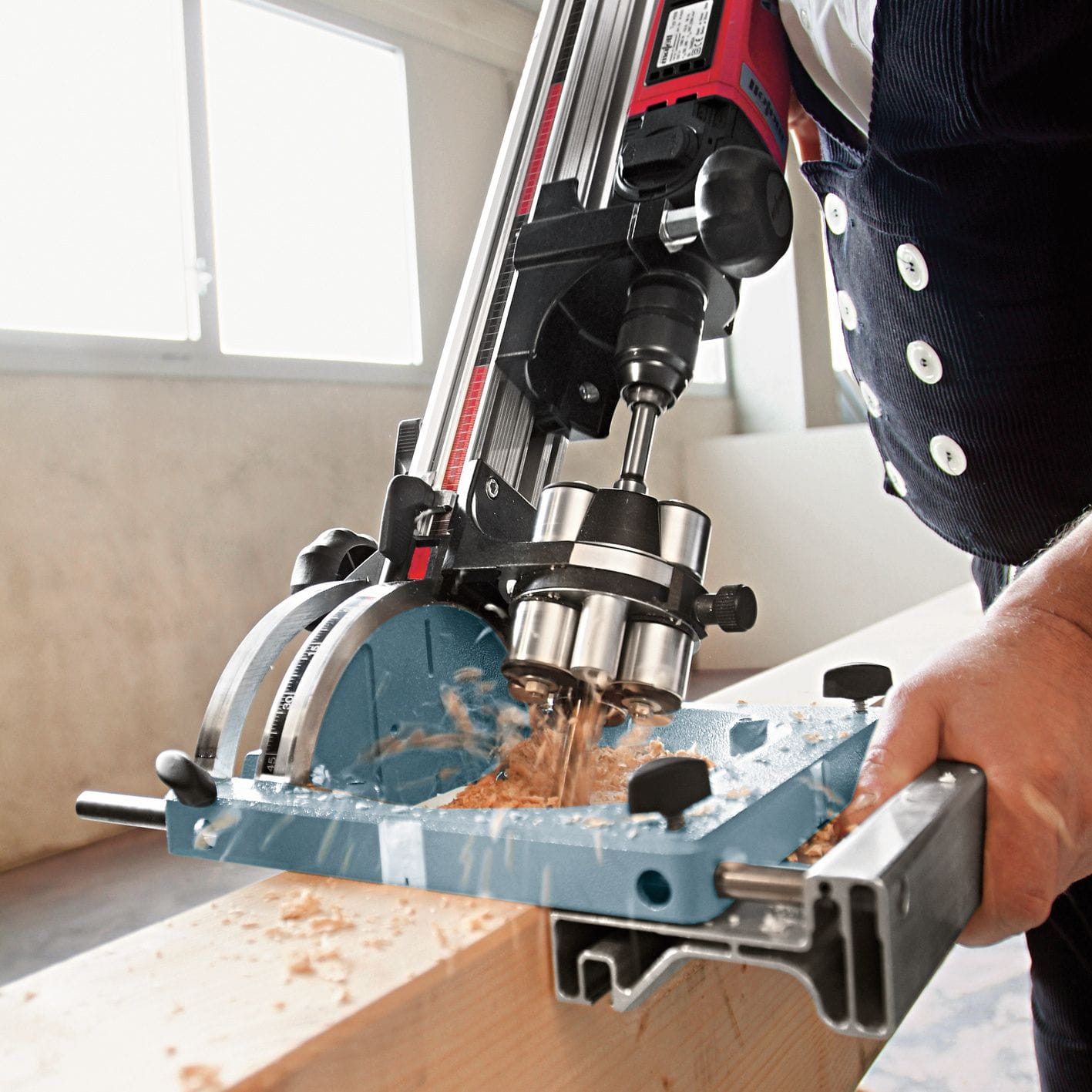 - Stojak wiertarski firmy MAFELL, nie tylko oferuje najwyższą precyzję w porównaniu z konwencjonalnymi statywami wiertarskimi, ale także rewolucjonizuje sposób wiercenia w litym drewnie. Jego przemyślana konstrukcja, oparta na wytrzymałej, a jednocześnie bardzo lekkiej aluminowej kolumnie, po prostu nie może nie zachwycić.