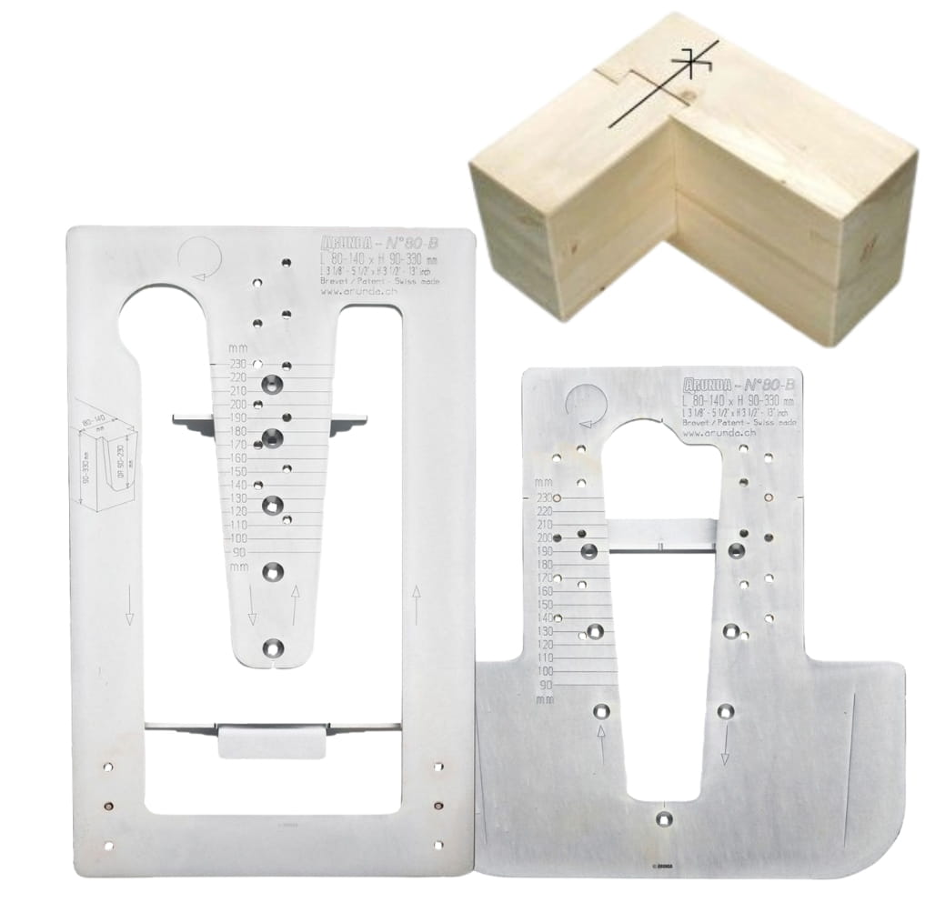 - Istnieje wiele modeli szablonów. Przy użyciu jednego modelu szablonu można dokonywać obróbki różnych szerokości i wysokości drewna. Wybiera się jeden, zgodny z najczęściej przerabianą szerokością drewna, gdyż im większe połączenie, tym większa wytrzymałość połączenia.