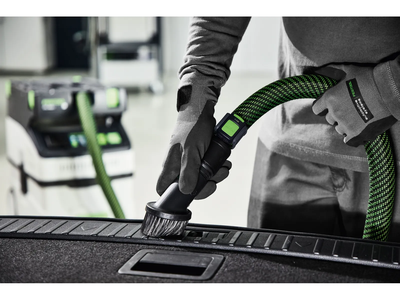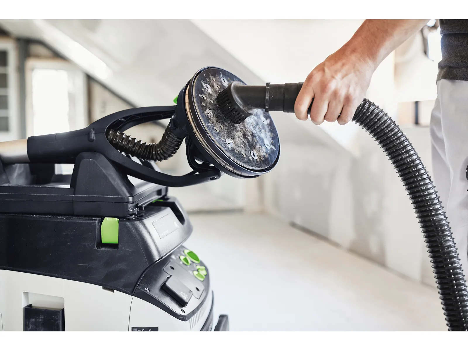 CLEANTEC CTH 26 EI bezpiecznie usuwa rakotwórcze i chorobotwórcze pyły, takie jak pleśń, azbest, pyły z włókien mineralnych lub ołów. Dzięki dwuwarstwowemu, zabezpieczającemu workowi filtrującemu niebezpieczne zanieczyszczenia są bezpiecznie zamknięte. Dodatkowy worek jednorazowy otacza worek filtrujący. Obsługa dotykowa umożliwia intuicyjne sterowanie odkurzaczem. Z zainstalowanym na stałe złączem Bluetooth® do automatycznego uruchamiania odkurzacza za pomocą akumulatorowego narzędzia Festool lub opcjonalnego modułu zdalnej obsługi. Możliwość połączenia z aplikacją Festool. Gładki, antystatyczny wąż ssący można wygodnie przechowywać w zintegrowanym schowku na wąż. W ten sposób odkurzacz staje się centralnym elementem systemu.