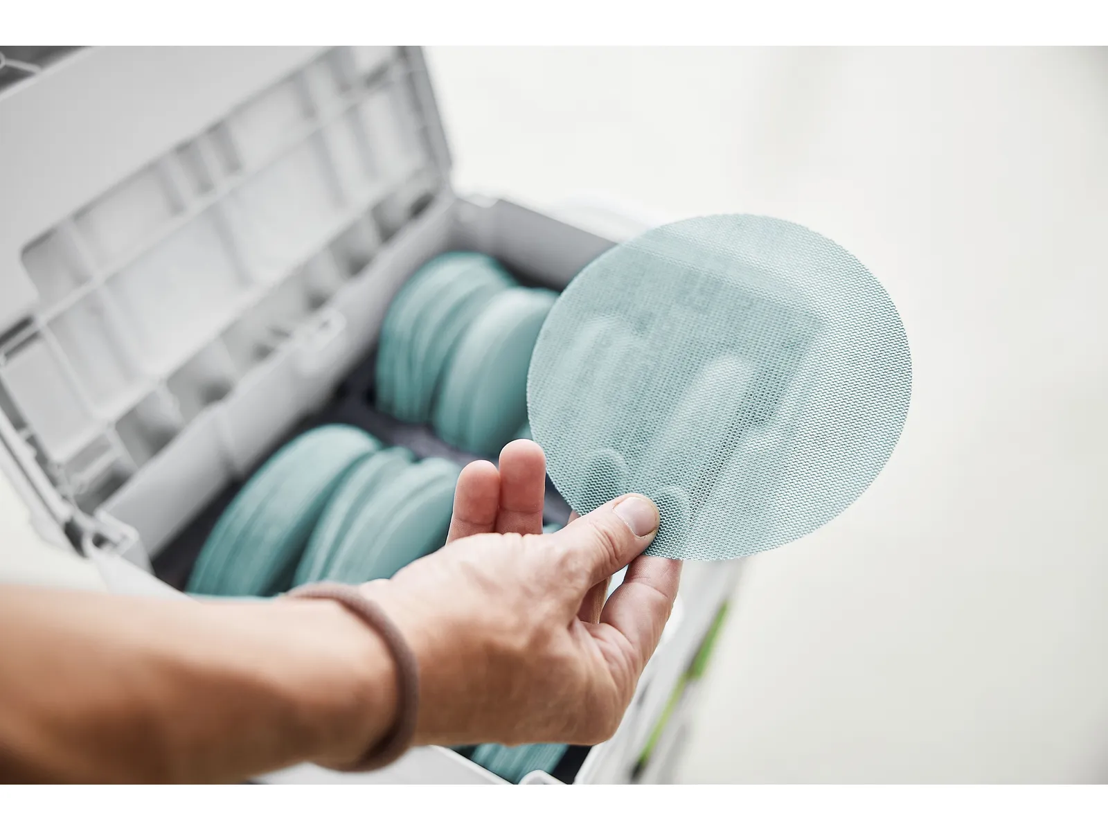 Zawiera włókninę siatkę ścierną, która pasują do szlifierek Festool: RO 150, ES 150, ETS 150, ETS EC 150, LEX 150, WTS 150