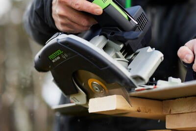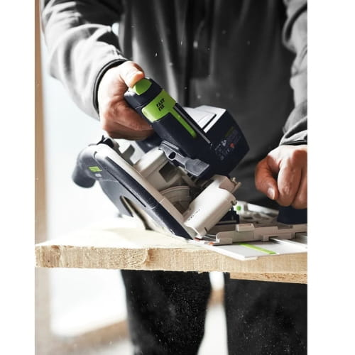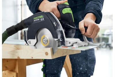 Idealna z systemem szyn Festool — długie, proste cięcia z czystą krawędzią w płytach i blatach.