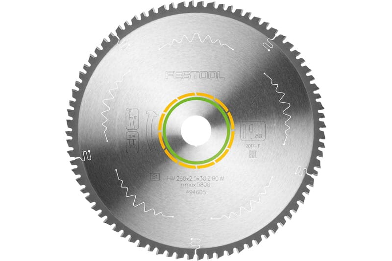 Tarcza pilarska Wood Fine Cut HW 260x2,5x30 W80 czyste cięcie bez wyrw do KS 120 FESTOOL 494605